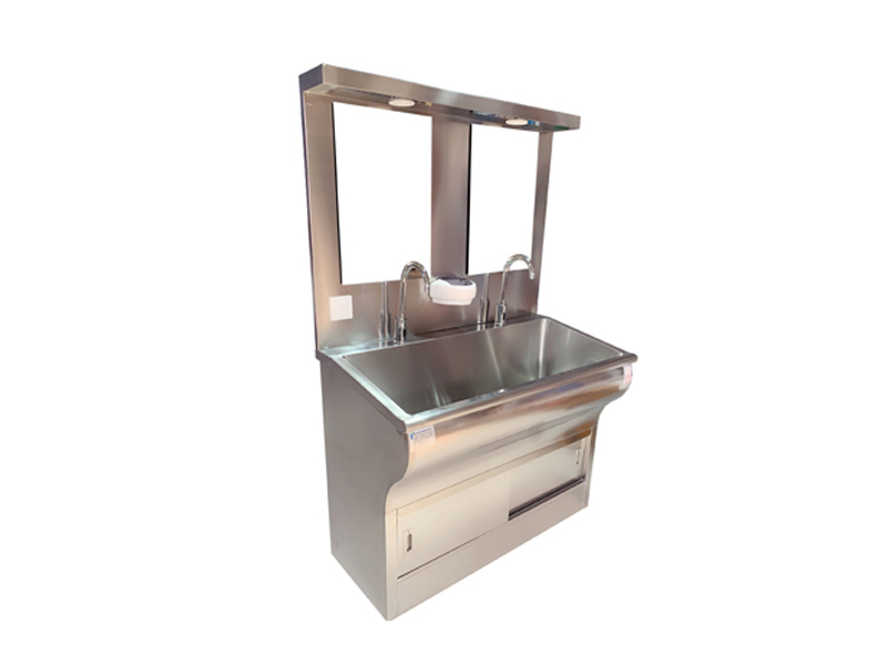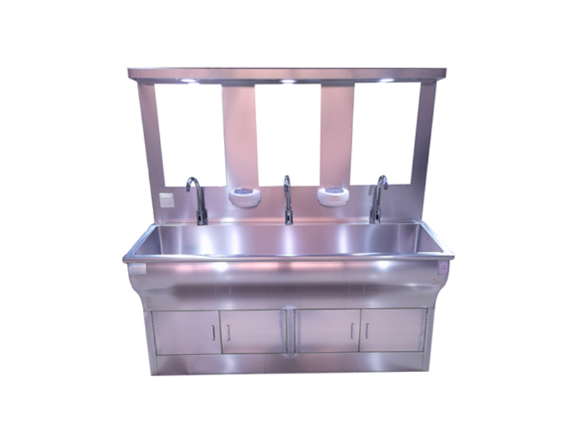 不銹鋼潔凈洗手池分為一人位、雙人位、三人位、四人位等,可根據(jù)客戶要求定制。無塵室不銹鋼洗手池、洗手槽采用SUS304不銹鋼制作,中間特殊靜音處理。槽身以人體工程學設計洗手時水花不易濺到身上。鵝頸型水龍頭,光控感應式出水,可靠。配紅外線感應給皂液裝置,醫(yī)用洗手池可選裝自帶40L美的電熱水器,自由設定出水溫度,一年四季可提供恒溫水,水龍頭感應自動出水,每個洗手位帶獨立鏡燈和鏡子,洗手槽采用特制的坡度設計,可有效防止水濺到洗手池外,各水嘴獨立設置,不影響其它水嘴的使用。